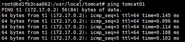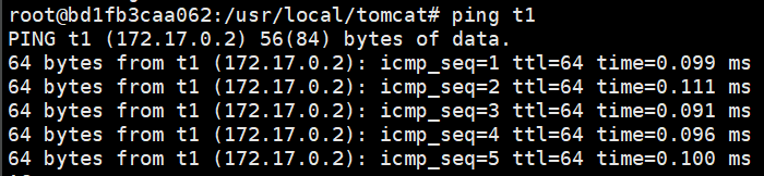 兩個(gè)都能ping通,可見(jiàn),tomcat01 和 t1 都指向172.17.0.2。