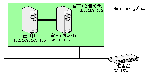 這種方式下,虛擬機(jī)的網(wǎng)卡連接到宿主的 VMnet1 上,但系統(tǒng)并不為虛擬機(jī)提供任何路由服務(wù),因此虛擬機(jī)只能和宿主機(jī)進(jìn)行通信,而不能連接到實際網(wǎng)絡(luò)上。