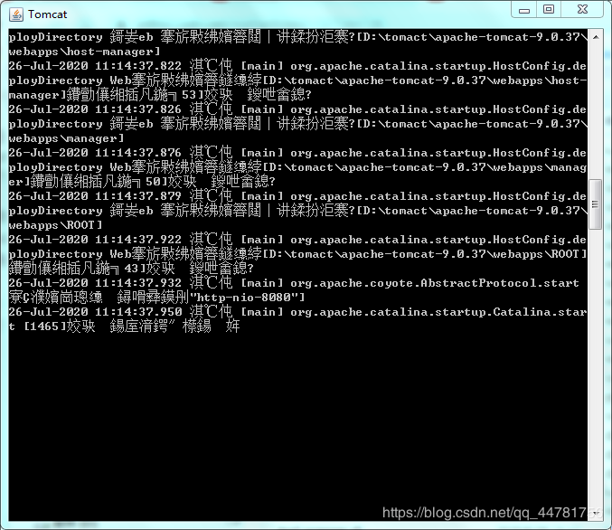 啟動tomcat,在命令行窗口出現(xiàn)英文提示,