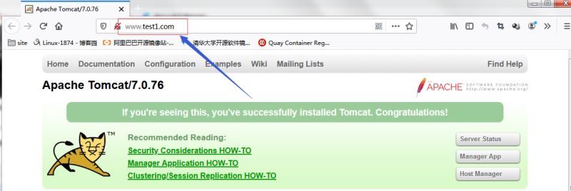 驗證:用瀏覽器訪問www.test1.com 看看是否響應(yīng)tomcat 中l(wèi)ocalhost的頁面給我們?