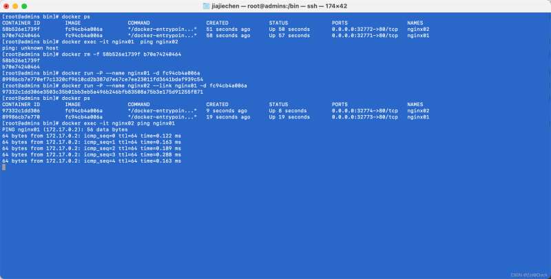 發(fā)現(xiàn)用了–link之后容器是可以ping通的,–link推薦小白使用,接下來(lái)我們用自定義網(wǎng)絡(luò)試一下