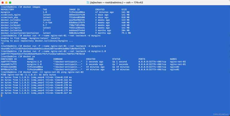 在這里我啟動(dòng)了兩個(gè)容器,用–net指定了容器的網(wǎng)絡(luò),可以看到可以直接ping通在同一網(wǎng)絡(luò)的容器,非常的簡(jiǎn)單