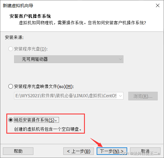 4.選擇【稍后安裝操作系統(tǒng)】,點擊【下一步】。