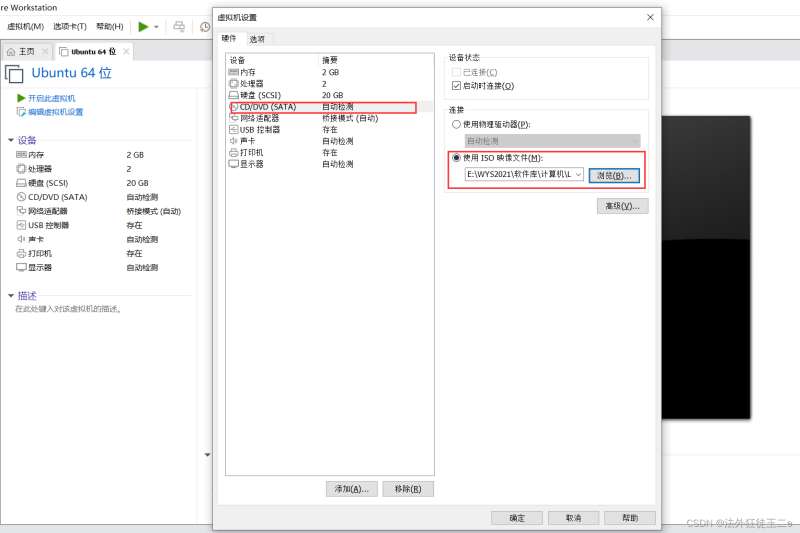 15.選擇【新CD/DVD(SATA)】,選擇【使用ISO鏡像文件】,點擊【瀏覽】