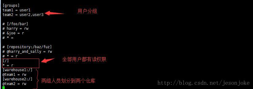 # cd /usr/local/svn/svnrepos/warehouse1/conf