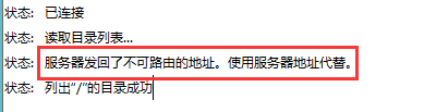 而在windows下使用FileZilla測試并沒有問題。仔細看了下FileZilla的日志,發(fā)現(xiàn)有一行