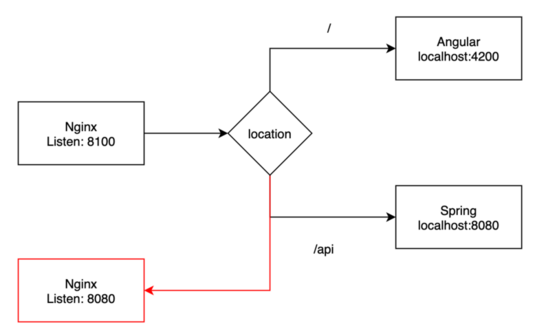 Nginx監(jiān)聽(tīng)端口8100,前臺(tái)端口4200,后臺(tái)端口8080。