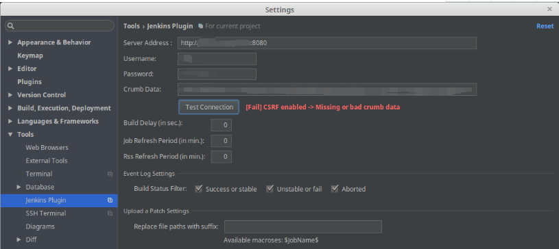 idea結(jié)合Jenkins插件進(jìn)行遠(yuǎn)程發(fā)布,在Crumb Data通過http://ip:8080/crumbIssuer/api/xml?tree=crumb#獲取填入時(shí),出現(xiàn)CSRF enabled -> Missing or bad crumb data