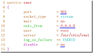 ③ swat默認使用tcp的901端口。“port=901”,可以修改。