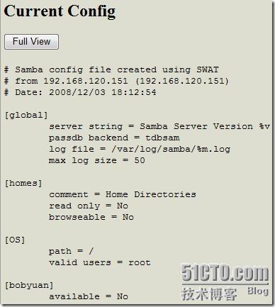 VIEW:查看Samba的文本配置文件,即smb.conf。