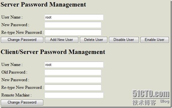 如下圖,“Change Password:更改密碼”、“Add New User:新建用戶”、“Delete User:刪除用戶”、“Disable User:鎖定用戶”、“Enable User:解鎖被鎖定用戶”。