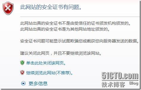 在web中輸入:[url]https://192.168.120.241:901[/url]即可安全進入,不過在打開頁面時會提示證書未經(jīng)過驗證,這個不用理會,直接進入即可。
