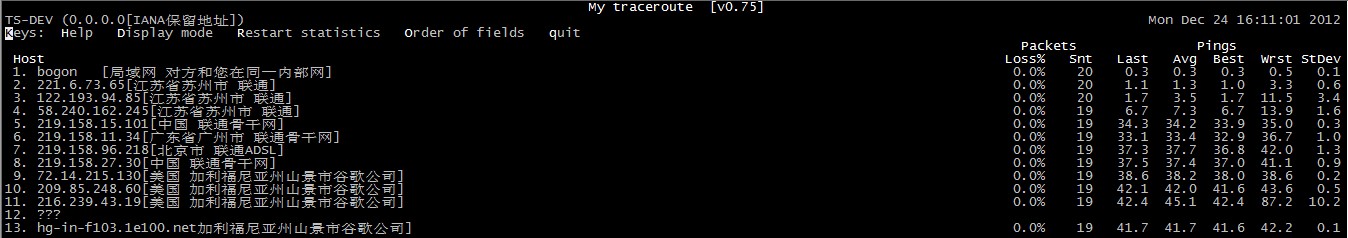 6 219.158.3.194[北京市 聯(lián)通ADSL] (219.158.3.194[北京市 聯(lián)通ADSL]) 44.582 ms 44.464 ms 44.489 ms