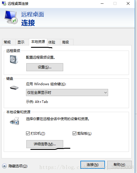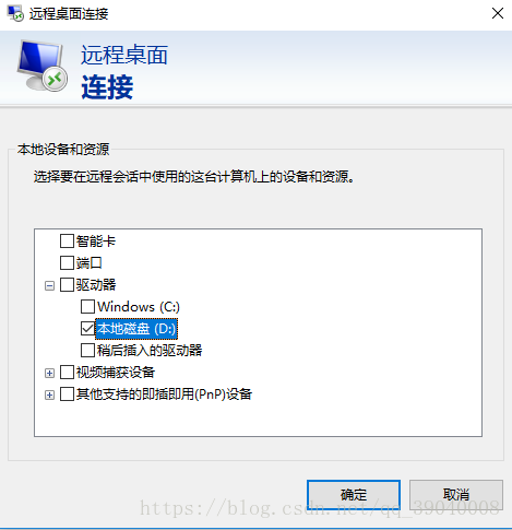 (為了方便我們之后軟件的安裝我個(gè)人推薦在第一次連接時(shí)在遠(yuǎn)程會話中使用本地資源)