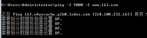 使用英文操作系統(tǒng)時的提示為:Packet needs to be fragmented but DF set