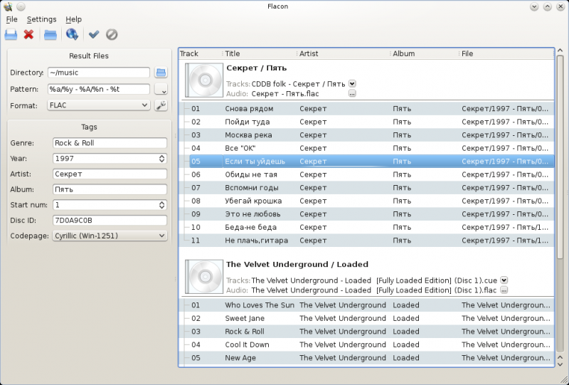 Flacon 另外一個(gè)有用的功能就是標(biāo)記導(dǎo)出的音軌文件,基于在CUE文件或手動(dòng)提供的信息。