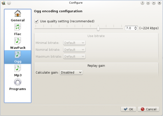 該應(yīng)用程序提供了輸出格式具體設(shè)置:你可以設(shè)置除 ReplayGain 以外的輸出質(zhì)量,壓縮等,無(wú)論是每個(gè)專(zhuān)輯或音軌。