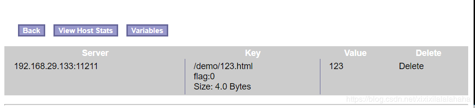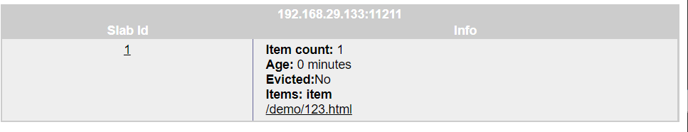 #可看出第一次memcache中沒有緩存,第二次擊中緩存 [root@bak ~]# curl -I http://192.168.29.132/demo/123.html HTTP/1.1 200 OK Server: nginx/1.16.1 Date: Thu, 25 Jun 2020 02:23:00 GMT Content-Type: file Content-Length: 4 Connection: keep-alive X-Powered-By: PHP/7.2.26 X-cache: MISS: [root@bak ~]# curl -I http://192.168.29.132/demo/123.html HTTP/1.1 200 OK Server: nginx/1.16.1 Date: Thu, 25 Jun 2020 02:23:01 GMT Content-Type: text/html Content-Length: 4 Connection: keep-alive X-mem-key: /demo/123.html Accept-Ranges: bytes #當設(shè)置緩存后,訪問相同的緩存key時,即使發(fā)起訪問的機器不相同也同樣能擊中緩存 [root@master ~]# curl -I http://192.168.29.138/demo/123.html HTTP/1.1 200 OK Server: nginx/1.16.1 Date: Thu, 25 Jun 2020 02:29:46 GMT Content-Type: text/html Content-Length: 4 Connection: keep-alive X-mem-key: /demo/123.html Accept-Ranges: bytes