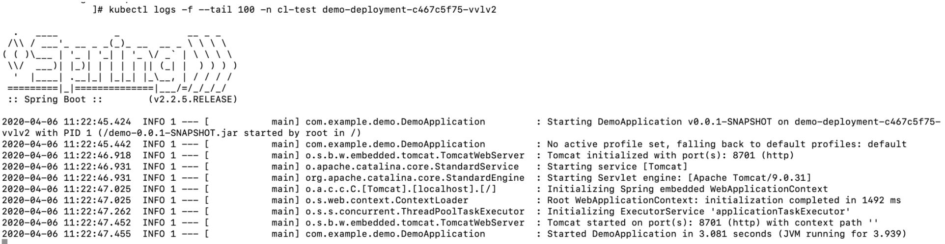 pod日志查看,正是我們之前java啟動(dòng)時(shí)所展示的日志