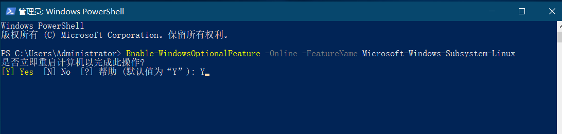 輸入以下命令,然后輸入 Y 重啟機(jī)器