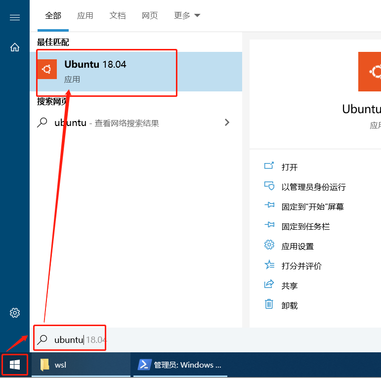 按下 Windows 鍵 輸入 Ubuntu 單機(jī)打開,設(shè)置用戶名和密碼