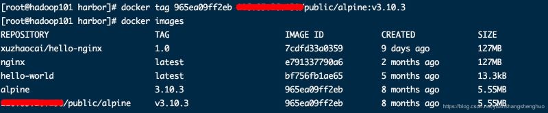 docker tag 965ea09ff2eb 倉庫ip/public/alpine:v3.10.3