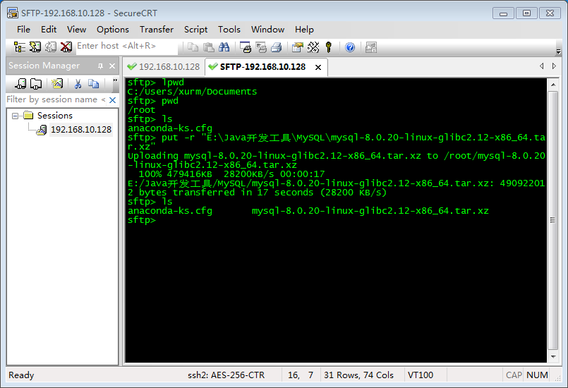 基于SecureCRT向遠(yuǎn)程Linux主機(jī)上傳下載文件步驟圖解