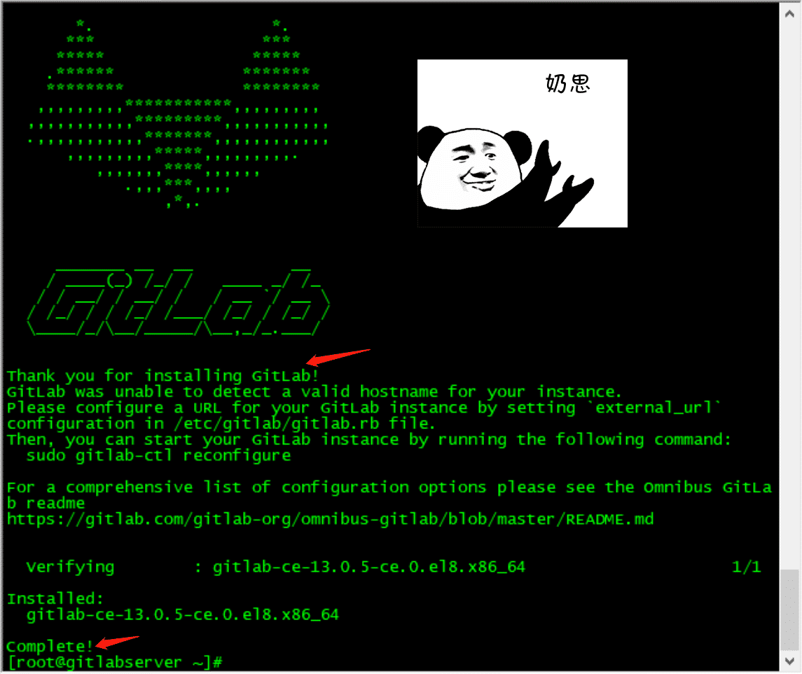 有沒有發(fā)現(xiàn),在“新的第三步”里比原來的第三步少了個東西,啥東西呢?細(xì)心的同學(xué)肯定發(fā)現(xiàn)了,沒有配置Gitlab服務(wù)器的外部訪問地址(EXTERNAL_URL)!不要急,等待Gitlab裝完后我們再去配一下就好了!國內(nèi)鏡像還是比較快的,幾分鐘就下載并裝好了,出現(xiàn)騷氣的狐貍頭圖標(biāo)!