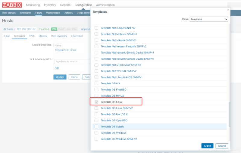 為你的主機(jī)添加zabbix為我們提供自帶監(jiān)控模板