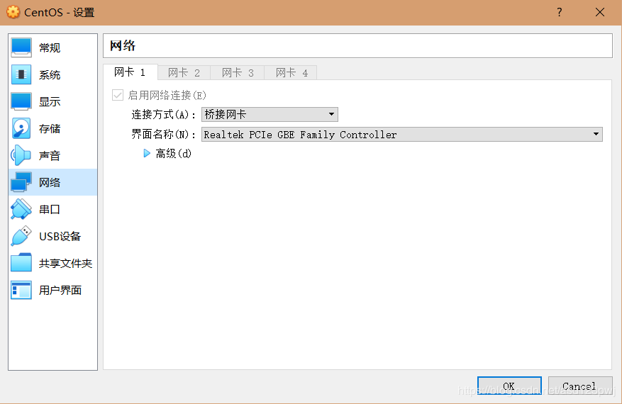 1.打開VirtualBox,設(shè)置->網(wǎng)絡(luò),連接方式選擇橋接網(wǎng)卡。