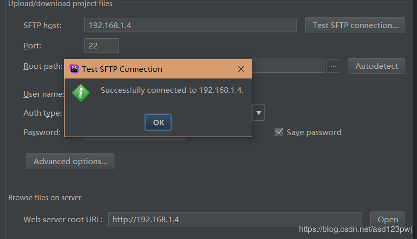 2.在控制臺(tái)輸入ifconfig,找到enp0s3開頭,第二行的inet的地址,然后將phpstorm里SFTP host修改成這個(gè)地址,我這里是192.168.1.4