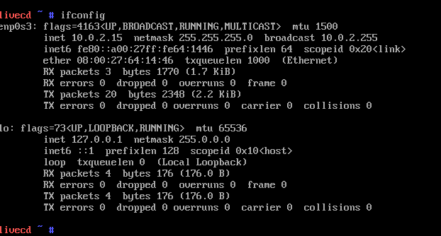 >ifconfig enp0s3 192.168.1.127 netmask 255.255.255.0 #enp0s3是你的網(wǎng)卡,后邊是ip