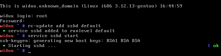 rc-update add sshd default #設(shè)置ssh開(kāi)機(jī)啟動(dòng)