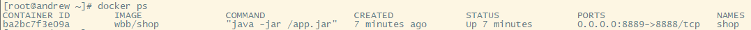 2、啟動容器:docker run -it -p 8889:8888 --name shop wbb/shop