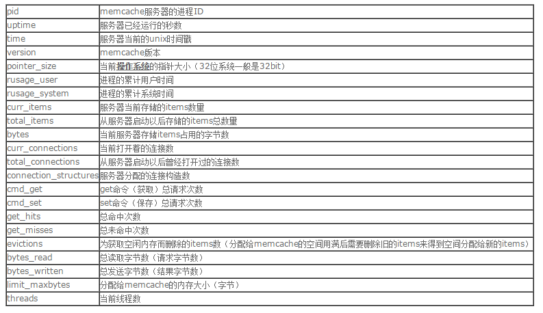 memcache的運行狀態(tài)可以方便的用 stats 命令顯示。