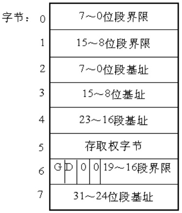 上面的數(shù)據(jù)結(jié)構(gòu)我們稱為段描述符,多個(gè)段描述符組成的表稱為段描述符表