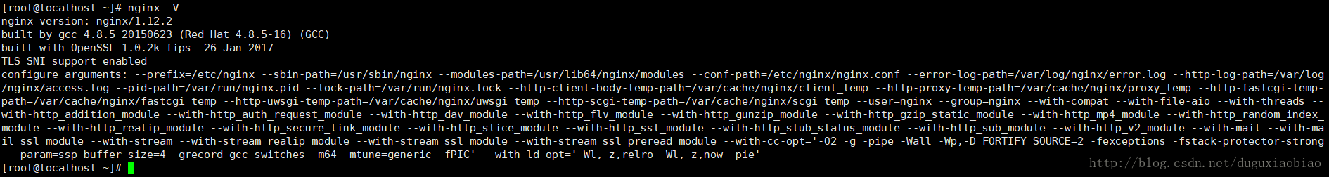 nginx模塊分為兩種,官方和第三方,我們通過命令 nginx -V 查看 nginx安裝信息,可以看到 下面有關(guān) --with的nginx啟動加載的模塊信息。