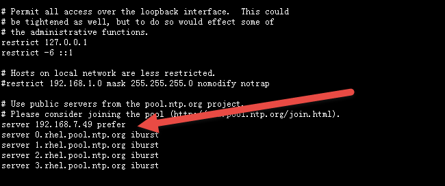 1:設定NTP主機來源(其中prefer表示優(yōu)先主機),192.168.7.49是本地的NTP服務器,所以優(yōu)先指定從該主機同步時間。