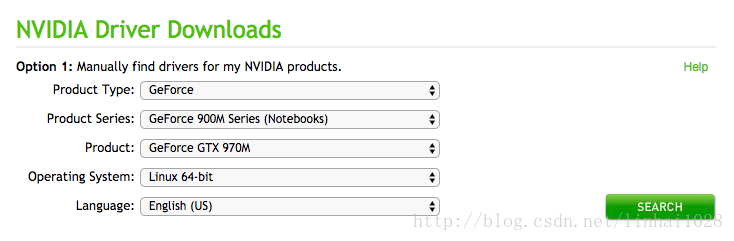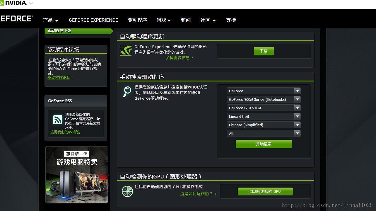 去NVDIA driver search page查看支持 GTX970M 顯卡的驅(qū)動的最新版本的版本號