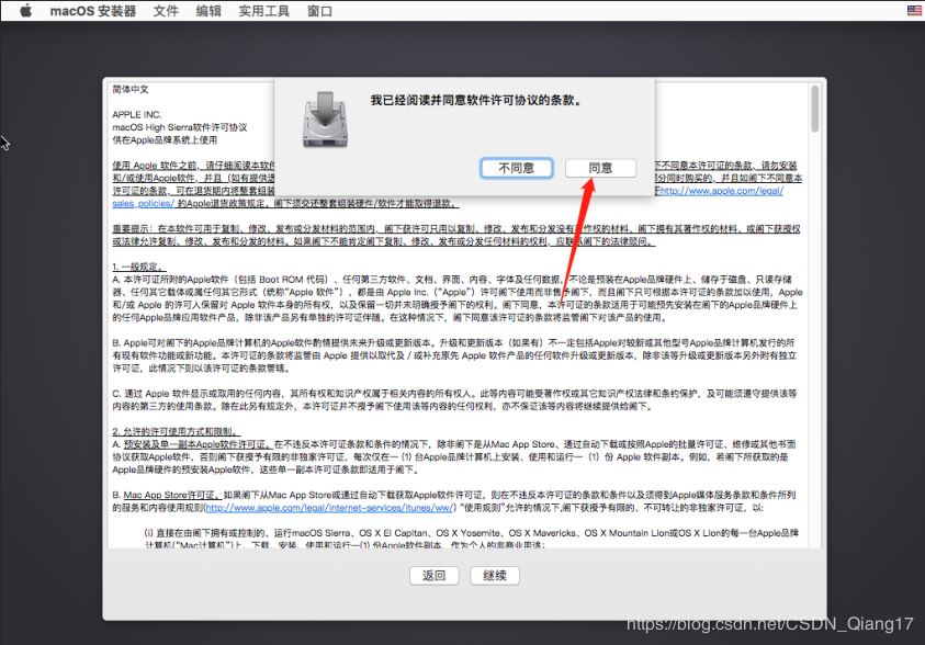 選擇macOS系統(tǒng)的安裝目錄