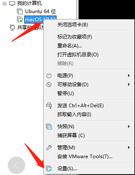 2.選中當(dāng)前macOS虛擬機右鍵選中設(shè)置