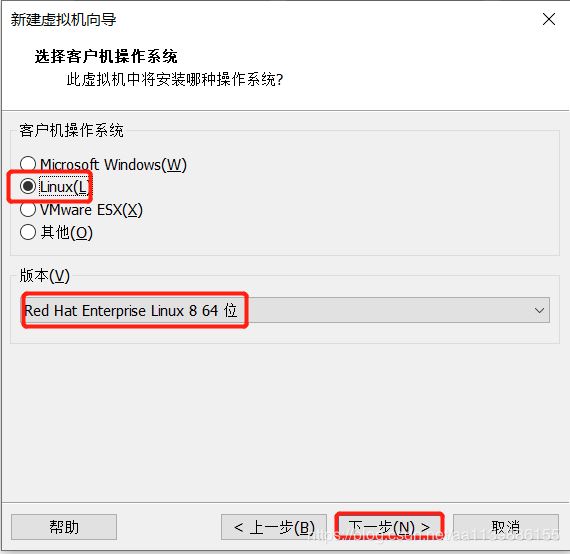 5.linux版本選擇,因?yàn)閂Mware15.5版本選擇里面沒有centios8.1,這里我們選擇Rded Hat Enterprise Linux 8 64位