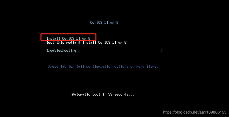 5.選擇install centos Linux 8,鍵盤上下箭頭控制選擇
