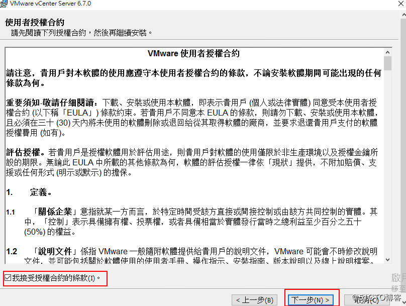 第二個(gè):用戶許可協(xié)議,勾選,我接受協(xié)議條款,下一步。
