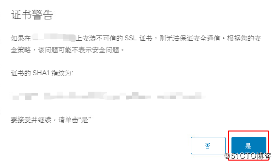 點(diǎn)擊下一步的時(shí)候 ,會(huì)有驗(yàn)證的ESXi的一個(gè)證書警告,因?yàn)?SSH連接。然后驗(yàn)證連接。