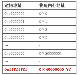 當(dāng)內(nèi)核模塊代碼或線程訪問內(nèi)存時(shí),代碼中的內(nèi)存地址都為邏輯地址,而對(duì)應(yīng)到真正的物理內(nèi)存地址,需要地址一對(duì)一的映射,如邏輯地址0xc0000003對(duì)應(yīng)的物理地址為0×3,0xc0000004對(duì)應(yīng)的物理地址為0×4,… …,邏輯地址與物理地址對(duì)應(yīng)的關(guān)系為