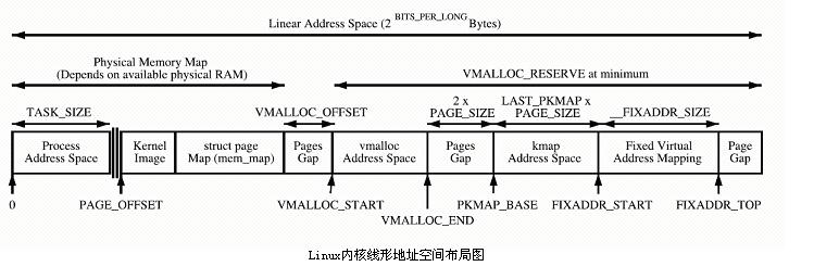 通常32位Linux內(nèi)核虛擬地址空間劃分0~3G為用戶空間,3~4G為內(nèi)核空間(注意,內(nèi)核可以使用的線性地址只有1G)。注意這里是32位內(nèi)核地址空間劃分,64位內(nèi)核地址空間劃分是不同的。