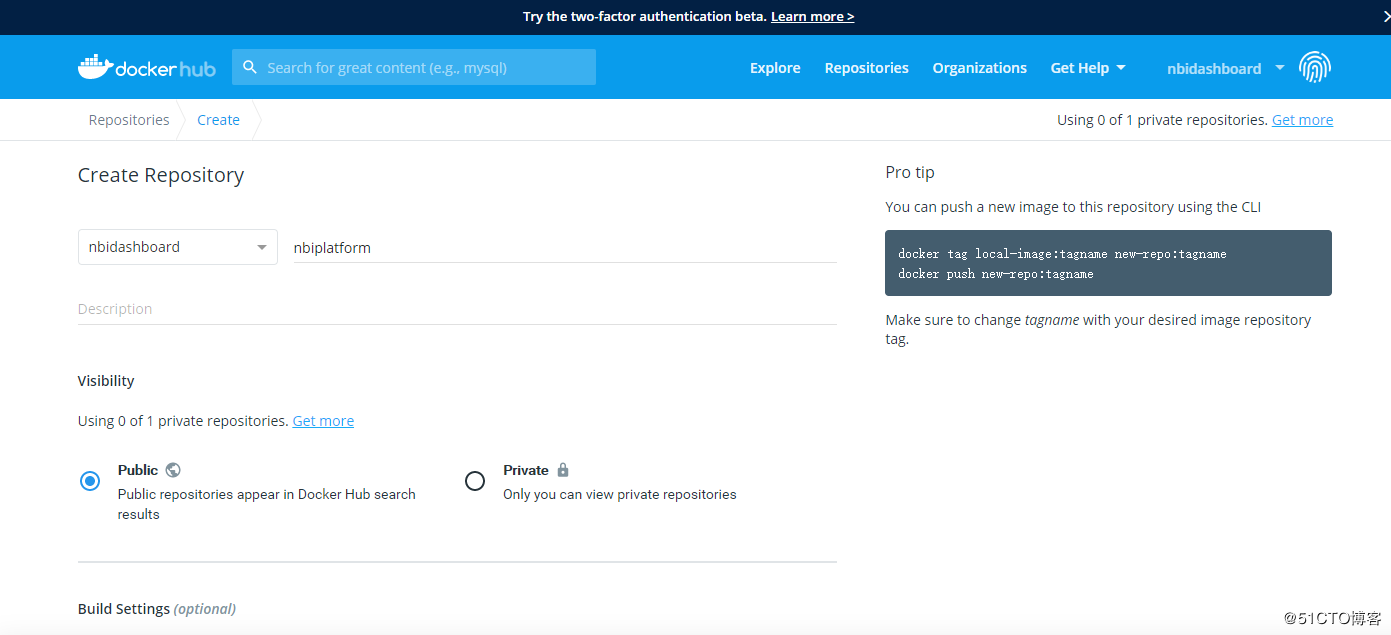 (2)賬號(hào)注冊(cè)好之后,我們創(chuàng)建一個(gè)倉(cāng)庫(kù),用于存放鏡像