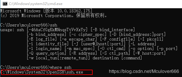 如果使用的系統(tǒng)是Windows10,系統(tǒng)中已經(jīng)自帶了SSH,不能再使用Git的ssh:如圖: