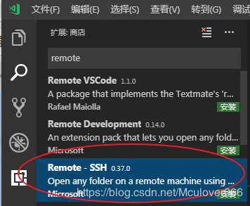 在VS Code擴展市場搜索remote,選擇Remote-SSH,點擊安裝: